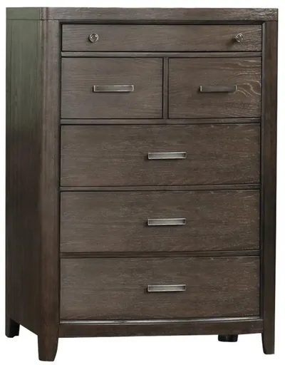 Elevate your bedroom with this Fulton Chest from Bernards. Shown in a brown finish, this chest features 6 drawers that provides storage for personal items and can be a decorative piece in the room. Make a bold statement by incorporating this furniture to your home.