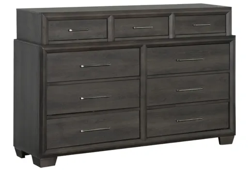 Elevate your bed room with this Lombard Grey Dresser from Bernards. Shown in a grey color finish, this dresser features 9 drawers that provides storage for personal items and can be a decorative piece in the room. Make a bold statement by incorporating this furniture to your home.