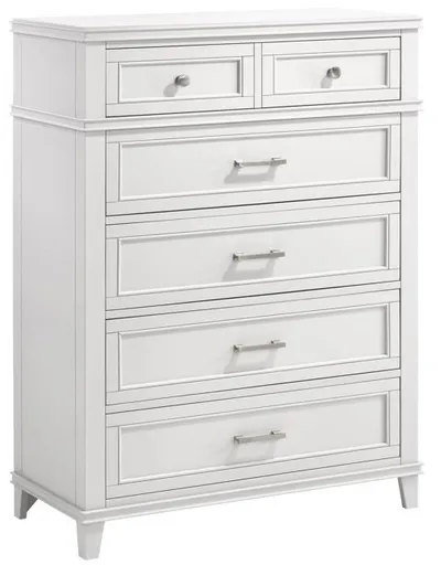 Elevate your bed room with this Nova II Chest from Bernards. Shown in a white color finish, this dresser features 5 drawers that provides storage for personal items and can be a decorative piece in the room. Make a bold statement by incorporating this furniture to your home.