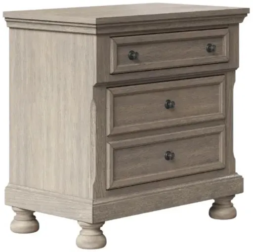 The Prescott 2-Drawer Nightstand offers a perfect blend of elegance and practicality with its rich cherry finish and classic design. Part of the Prescott Grey Bedroom Set, this nightstand features three spacious drawers, ideal for bedside storage. The top drawer is felt-lined, providing a protective space for delicate items like jewelry or glasses.