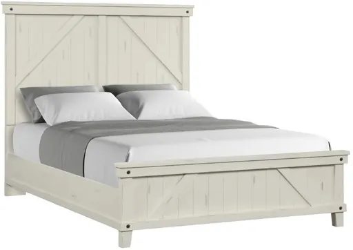 Transform your bedroom into a cozy retreat with the Spruce Creek Bed. The weathered off-white finish and high, paneled headboard showcasing a distinctive X-shaped accent will add a touch of farmhouse charm to your space. Get ready to relax in style and experience the ultimate comfort of this elegant bed.