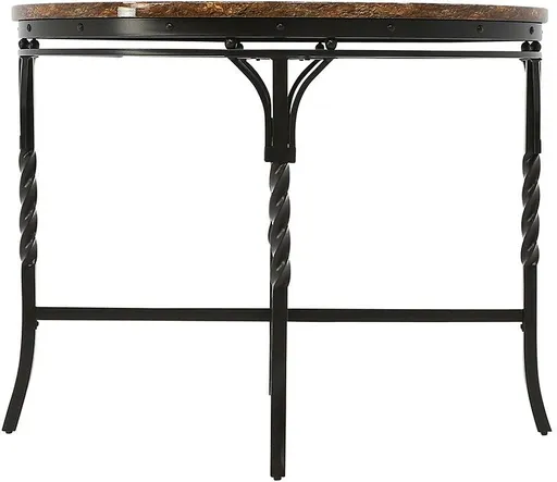 Bring a slice of Italy with this classically styled round table to your kitchen or dining nook. It features a faux marble top and metal frame in dark bronze finish with twisted metal legs. For charming fashion, the metal dining side chairs have a traditional back scroll detail.