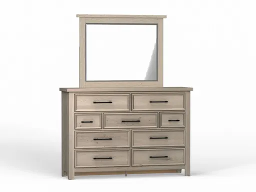 The Billy Dresser and Mirror brings clean lines and modern simplicity to your bedroom with its light gray washed finish and understated design. Its balanced proportions and neutral tone make it an easy match for contemporary spaces while offering generous, well organized storage.