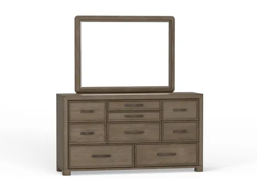 The Blanchard Dresser and Mirror Set combines timeless craftsmanship with modern design, creating a functional and stylish storage solution for your bedroom. Made from hardwood solids and oak veneers, it features a soft gray wash finish that highlights the natural wood grain. Metal hardware adds a bold contrast, while the clean lines keep the look refined and versatile. With nine spacious drawers, this dresser provides ample storage for clothing and accessories, and the soft-touch felt lining in the top drawers helps protect delicate items.