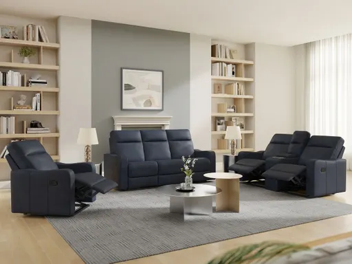 The Brooks Sofa, Loveseat, and Recliner Set brings comfortable, coordinated seating to your living space with a relaxed look built for everyday use. Upholstered in a rich slate chenille fabric with a dark, desaturated navy black tone, this set creates a cozy, grounded atmosphere that feels inviting and easy to live with.