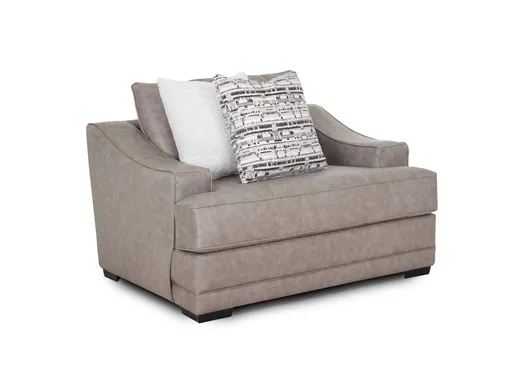 The Corbin Chair and a Half offers oversized comfort with the sophisticated look of leather and the durability of modern fabric. Upholstered in a taupe gray-brown 100% polyester that replicates the texture of real leather, this generously sized stationary chair creates a warm and inviting seat perfect for lounging, reading, or relaxing. Two matching throw pillows add an extra layer of comfort and style, making it a cozy centerpiece or companion to the Corbin Sofa and Loveseat.