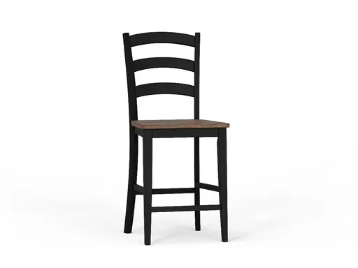 The County Pub Chair brings elevated farmhouse style to your dining or gathering space with its pub-height design and classic materials. Featuring a timeless ladder back in a slate black finish and a light brown seat, this two-tone pub chair is crafted from solid rubberwood for strength and durability. Its taller profile makes it a perfect fit for pub tables, kitchen islands, or counter-height dining setups.
