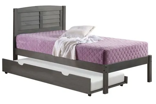 Our Louver platform bed is the perfect mix of contemporary and traditional build with an Antique Grey finish that easily matches your home decor. The solid pine wood is constructed to last for years. The Included Twin pullout trundle adds additional sleeping space.