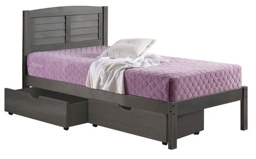 Our Louver platform bed is the perfect mix of contemporary and traditional build with an Antique Grey finish that easily matches your home decor. The solid pine wood is constructed to last for years. The included dual Under-bed drawers add additional storage space while moving easily on caster wheels.