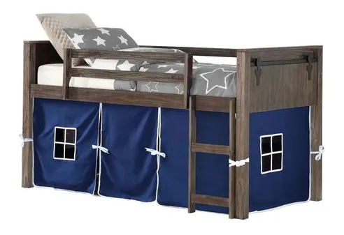 This beautiful low loft will add imaginative play and functionality to your child's room. The solid wood construction gives this bed superior durability. A brushed shadow finish makes a great addition to any decor. Also included is a tent kid for added play area under the bed.