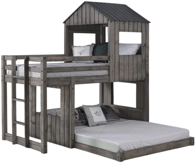 Create an adventurous and functional space that combines sleep and imagination in one design. The elevated twin bed and spacious full-size lower area maximize room for siblings or guests. It offers reliable support while bringing a fun, cabin-inspired atmosphere that makes any bedroom feel exciting and inviting.