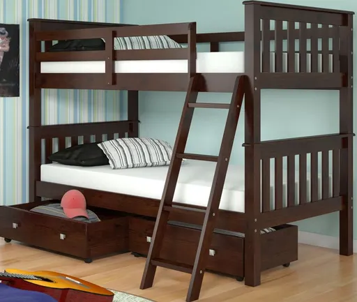 3. Donco Kids Dark Cappuccino Twin/Twin Mission Bunk Bed With Dual Under Bed Drawers
