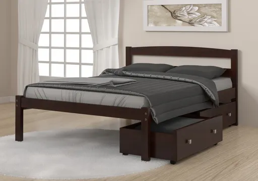 This Econo Bed has a simple style that will match any decor. The solid pine wood construction gives this bed superior durability that is sure to last for years to come. This full bed comes with a mattress ready slat system eliminating the need for box springs. The included dual under bed drawers create the perfect solution for room organization.