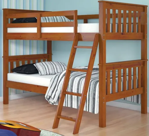 Crafted with sturdy, light espresso-finished wood, this bunkbed boasts a timeless mission-style aesthetic, effortlessly merging elegance with durability. Say goodbye to clutter and hello to seamless organization, as this bed's slat kit ensures a comfortable and secure sleep for your little ones.