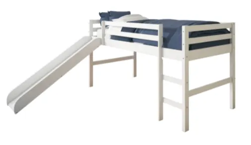 Transition your child from a toddler bed to an exciting twin low loft bed. The included slide makes it fun to get up in the morning. The warm light Espresso finish can easily match almost any decor. The bed is a great space saver in any child's bedroom, with a play area under the bed or open storage area.