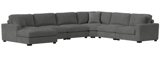 The Arizona sectional set features plush seat and back cushions to provide a luxurious seating. The extended chaise seat adds versatility and can be used to kick your feet up for ultimate relaxation. Horizontal tufting throughout make this group one of a kind and adds personality to the room.