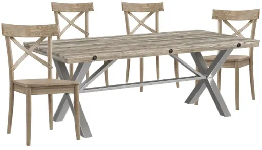 Gather around in style with this dining set, where culinary delights meet elegant design. This set is a tribute to those who love to host, featuring sleek contours and a welcoming aura. It's more than just a place to eat; it's a stage for life's celebrations, big and small.