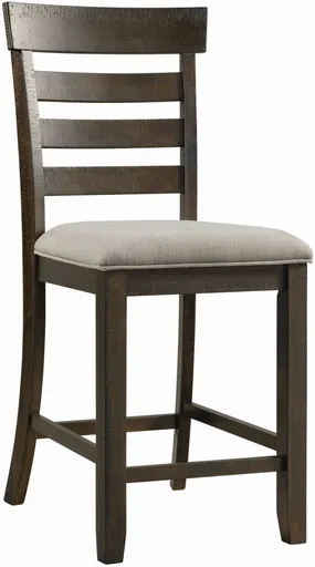 Bring modern rustic charm to your dining space with the Colorado counter height side chair. Featuring a sleek charcoal wood finish and soft beige upholstered seat, this chair offers comfort with contemporary style. Its counter-height design is perfect for kitchen islands, high-top tables, or casual dining areas.