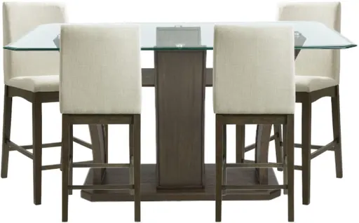 Upgrade your casual dining with the Dapper 5-piece cream/walnut rectangular counter height dining set. Featuring a warm walnut table paired with cream upholstered counter chairs, it combines modern style and comfort—perfect for kitchen islands, breakfast nooks, or intimate gatherings.