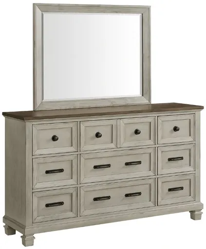 The Farmington dresser and mirror set epitomize elegance and practicality. The dresser's striking finish complemented by the matching mirror adds sophistication to any bedroom. With ample storage and a stylish mirror, this set offers both functionality and aesthetic appeal for organized living.