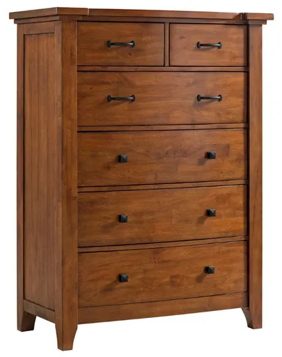 The Gage 6-Drawer Chest in Chestnut is poised with the grace and refinement of traditional style. Constructed from fine solid and engineered wood and featuring drawers crafted with skillful dovetailing and smooth ball bearing glides, this piece is as durable as it is timeless.