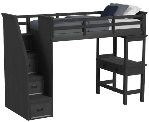 Elements International Hampton Kids Charcoal Youth Twin Loft Bed with Staircase and Desk