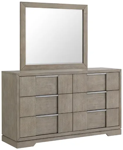 The Kelis gray dresser and mirror set is a perfect combination of style and functionality. The sleek design and elegant gray finish of the dresser complement any bedroom decor. Paired with the matching mirror, it adds a touch of sophistication while providing ample storage and a stylish reflection.