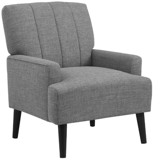 The Kiwi Accent Chair makes the perfect addition to any modern living space while featuring channel tufting that adds depth and dimension to the design. The welt arm edges add a touch of sophistication and elegance, while the wooden legs bring a natural element to the overall aesthetic.