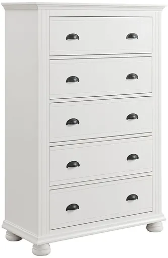 The Elements International Kona White Chest is a stylish and functional storage piece with a crisp white finish that complements various decor styles. Featuring multiple spacious drawers with sleek hardware, this chest offers ample storage space, making it a perfect addition to any bedroom.