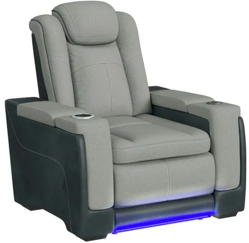 The Lantana power recliner with power headrest is a statement of luxurious style. Designed to maximize comfort, this piece features power reclining functionality to ease movement and enhance moments of repose, perfectly complementing the amply foam cushioned seating upholstered in quality, dual-toned faux leather.