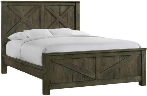 The Maverick Queen Panel Bed in grey delivers rustic and cozy style to your sleeping space. This farmhouse-inspired bed features a planked barn door effect on the headboard and footboard while the wood grain detailing creates country ambience. Constructed of sturdy solid and manufactured woods.
