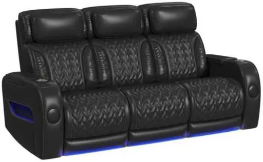 Upgrade your living room’s décor with the Prime Time Sofa. The power recline, headrest, and lumbar function maximize comfort, allowing you to enhance your moments of repose. Features like LED lighting add modern flair, while wireless charging, metal cupholders, and hidden storage in the armrests and console add practical convenience.