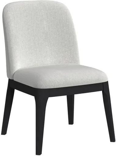 The Rosalie Dining Side Chair entices with the minimalist form of Scandinavian style. The sturdy and slightly tapered legs made of solid wood accent your dining space, while the versatile, light-colored upholstery enveloping supportive cushioning enhances comfort.
