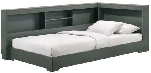 The Sami Twin Corner Bed creates a cove of comfort in your child's treasured space. This bed furthers its space-conscious corner design with its built-in storage shelving aligning the headboard, ensuring your child's bedroom essentials are within reach. Comprised of quality solid wood and sturdy bolt-in bed railing.
