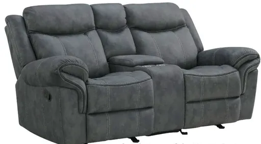 Introducing the Sorrento loveseat with console in charcoal. This luxurious loveseat is not only stylish and comfortable, but it also offers a range of convenient features. The center console provides a perfect spot to store snacks, remote controls, and other essentials.