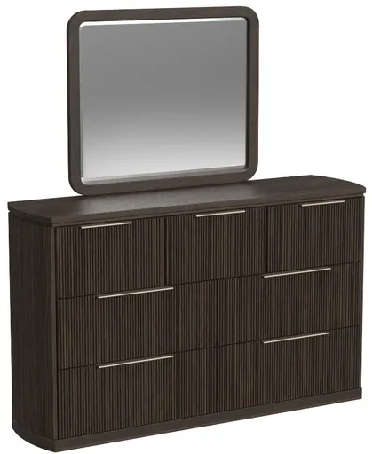 The Elements International Sylvie Dark Brown Dresser and Mirror Set offers a sleek, modern design with rich dark brown finishes. Featuring ample storage space and a beautifully framed mirror, it enhances any bedroom with its elegant and functional aesthetic.