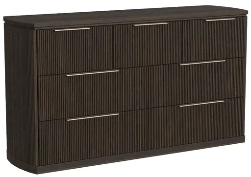 The Elements International Sylvie Dark Brown Dresser features a sleek, contemporary design with a rich dark brown finish. Offering ample storage space with spacious drawers, it combines functionality with modern elegance, making it a perfect addition to any bedroom decor.