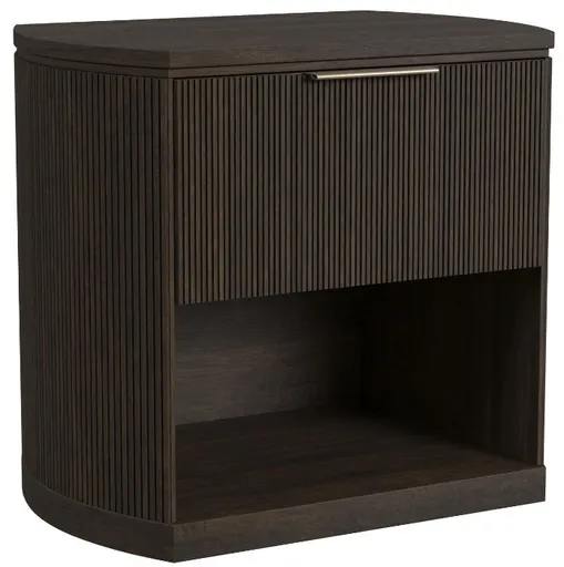 The Elements International Sylvie Dark Brown Nightstand features a sleek, contemporary design with a rich dark brown finish. Equipped with spacious drawers, it offers convenient storage for bedside essentials while adding a touch of elegance and functionality to any bedroom.