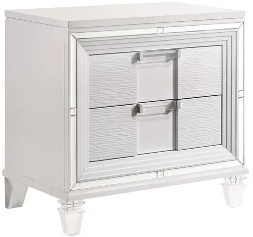 Add a touch of glamour to your bedroom with the Twenty Nine white nightstand. Featuring a sleek white finish, elegant hardware, and spacious drawers, it combines style and function perfectly. Ideal for keeping nighttime essentials within reach while enhancing your room’s modern charm.