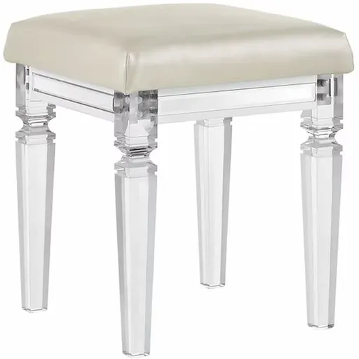 Complete your vanity setup with the chic Twenty Nine white vanity stool. Designed with a sleek white finish and a plush cushioned seat, it offers both comfort and elegance. Perfect for pairing with a vanity table, it adds a stylish touch to your morning routine.