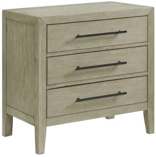 The Versailles Contemporary 3-drawer nightstand is the epitome of modern elegance. It features an oak veneer in a grey finish with black metal drawer handles. You will have plenty of room at your bedside to keep your things organized and out of sight.