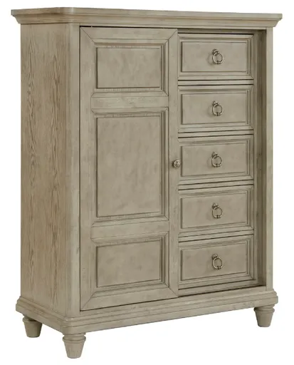 The Whit-Ash Light Gray Chest of Drawers features a sleek, light gray finish and contemporary design. With multiple spacious drawers, it offers ample storage for clothing and essentials. Its clean lines and modern aesthetic enhance any bedroom, combining style with practical functionality.