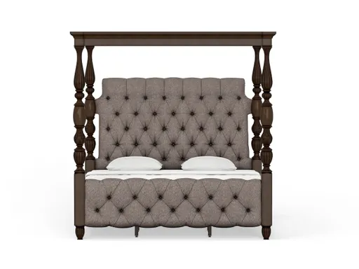 The Evans Canopy Bed brings dramatic height and timeless elegance to your bedroom. Featuring beautifully turned brown wood posts connected by a canopy frame, this bed creates a bold architectural presence while maintaining warmth through its English Oak finish. Upholstered in soft taupe fabric, the headboard and footboard add comfort and sophistication to the overall design.
