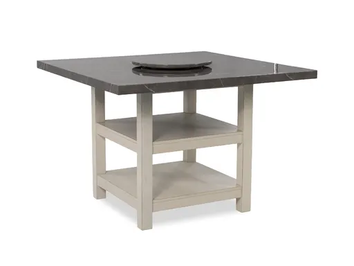 The Evie Pub Table offers elevated dining with a blend of casual elegance and clever functionality, perfect for kitchen nooks or smaller dining spaces. The gray faux marble tabletop features subtle white veining for a high-end look without the maintenance, beautifully paired with white wooden legs finished in an antique wash for a charming, time-worn touch. Its pub-height design encourages a relaxed, social atmosphere whether you're enjoying meals or entertaining guests.