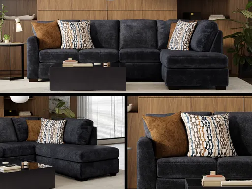 The Foster 2 Piece Sectional offers relaxed comfort and contemporary style in a versatile design that works beautifully in modern living spaces. Upholstered in a desaturated navy 100% polyester fabric, this stationary sectional delivers both durability and a soft, cozy feel. Its clean lines and generous seating make it ideal for lounging, entertaining, or everyday living.