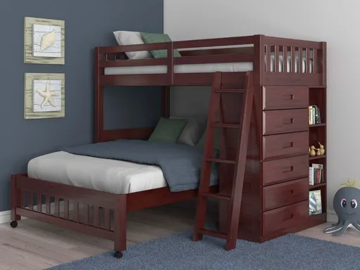 The Frankie Twin/Full Loft is a smart, space saving solution that brings function and versatility to shared bedrooms or growing spaces. Crafted from solid pine with a rich brown merlot finish, this loft bed combines classic style with a practical layout designed to maximize both sleep and storage.
