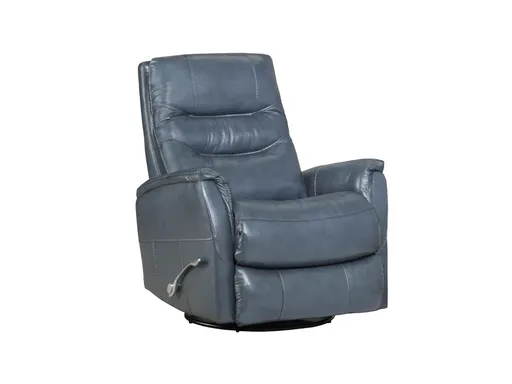 The Gemma Leather Swivel Recliner brings together modern style, premium materials, and full-body comfort in one sleek design. Available in rich Walnut or bold Blue, this recliner is upholstered in top-grain cowhide leather for a smooth, supple feel and long-lasting durability. Clean lines and tailored detailing give it a contemporary look, while the solid foam track arms and pad-over chaise design offer extra support from head to toe.