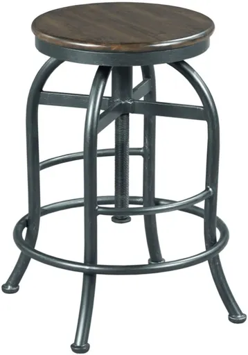This pub-height stool combines style and functionality with a rubberwood seat, sturdy metal base, and built-in footrest. Featuring a corkscrew height adjustment and leveling feet, it offers versatile seating for bars, kitchens, or counters, adding a modern-industrial touch while ensuring comfort and durability.