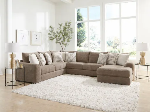 The Henry 3 Piece Sectional delivers spacious seating and relaxed comfort with a clean, modern design. This U-shaped sectional is upholstered in a soft, light brown textured fabric that complements a wide range of interiors, from casual to contemporary. Reversible seat and back cushions add versatility and help maintain a fresh look over time, while the deep seating layout makes it ideal for lounging, entertaining, or family movie nights.