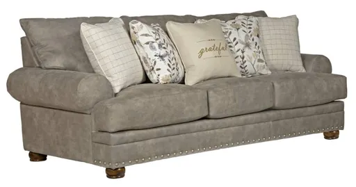 Time for a new sofa? Why not do it with style! The contemporary farmhouse casual look of the Briarcliff will be the envy of all your friends. The Briarcliff sofa is covered in a soft and durable polyester fabric accented with 5 accent pillows and individually placed pewter nailheads along the base.